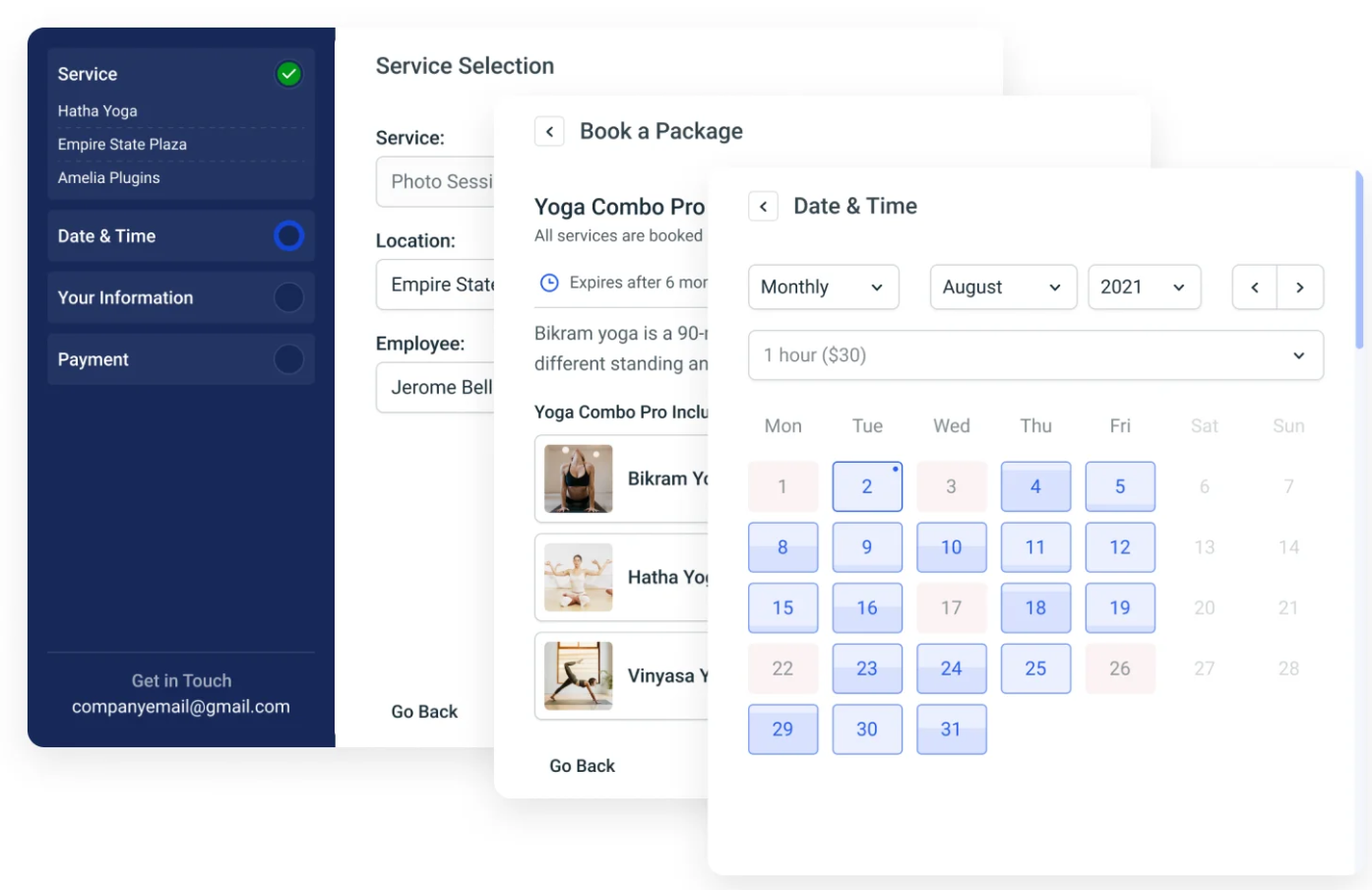 Simplifiez la prise de rendez-vous grâce à notre assistant de réservation intuitif, conçu pour maximiser vos conversions. Offrez à vos clients une expérience fluide : choix du service, du prestataire, de l’emplacement, de la date, de l’heure et du paiement… tout se fait en quelques clics seulement !